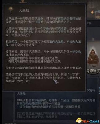 但是需要拥有一些指定的核心教义才能够发动,例如武装朝圣、斗争与顺服或战争狂人等。