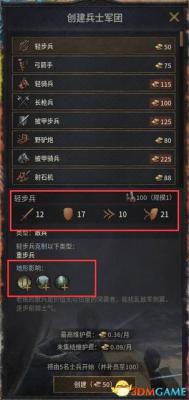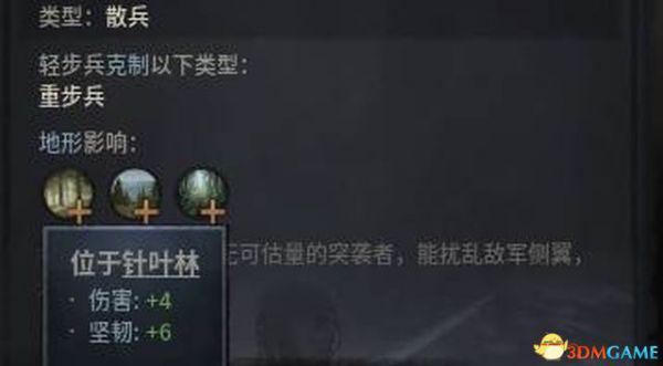 某些种类的兵士会受到地形影响,在对应地形战斗时,会不同程度地增加或减少属性值。