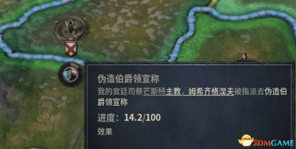 点击伪造伯爵领宣称后,鼠标放至某一块伯爵领,可查看需要完成时间和每月进度,其数值大小也跟主教的学识相关。