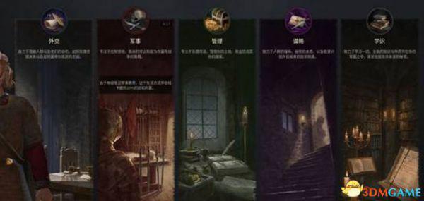 游戏中一共有五种生活方式,外交、军事、管理、谋略。