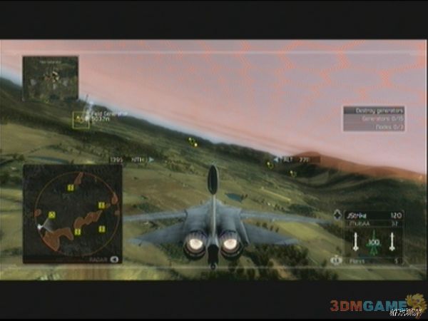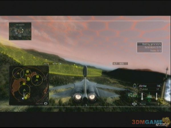 任务开始后,将军会告诉玩家这是目前玩家碰到的最艰难的任务,玩家的目标是摧毁3处发电站区域,每处有5个发电机,发电机区域位于敌人EMP电磁脉冲区域保护之中,玩家要做的是飞行到EMP区域的下部,在地面和EMP区域下部之间的地方进行低空飞行来摧毁发电站,只要掌握好路径,其实这次任务并不是很困难,唯一需要注意的是敌人萨姆导弹塔会在发电站周围守护,所以需要小心,另外中途出现的SU-47也可以完全不必理会。摧毁全部3个据点后任务结束。