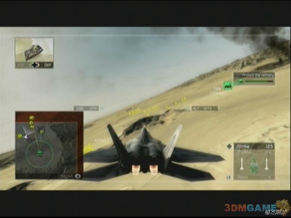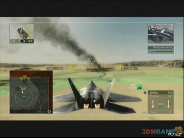 任务开始后往精炼厂方向飞,地图上的绿色目标即是。到达后立马进入第2个阶段,防御精炼厂,首批敌人从北面来,是些普通的坦克和直升机,轻松搞定后,会有若干批JAGUAR从东北,正东方向来,迅速清理之,之后会有大批敌人从北面杀来,还会不时的加入几架JAGUAR,还好在普通难度下精炼厂HP还不错,玩家有足够的时间清理敌人部队。保护完毕后,任务进入下阶段,敌人轰炸机于西北角出现,立即飞过去轰杀之,注意旁边会有倒计时,在倒计时内必须摧毁轰炸机,敌方机队内混有Mig-21,不要和轰炸机弄混了,击败轰炸机后任务2顺利完成。