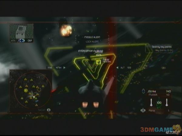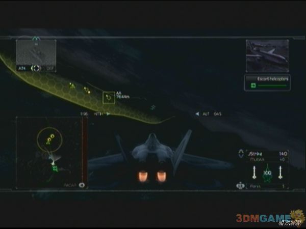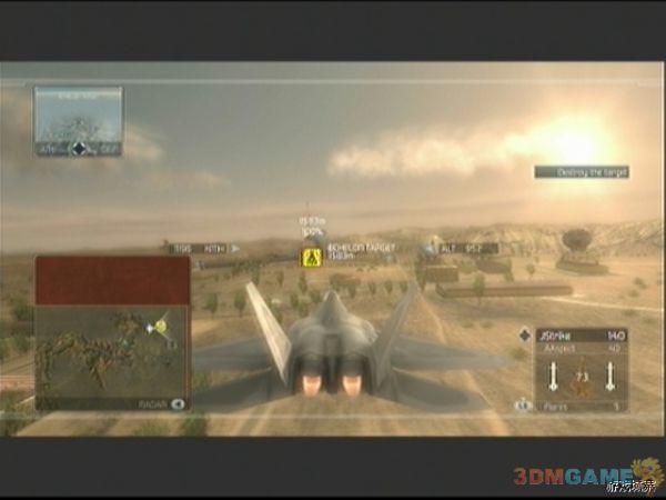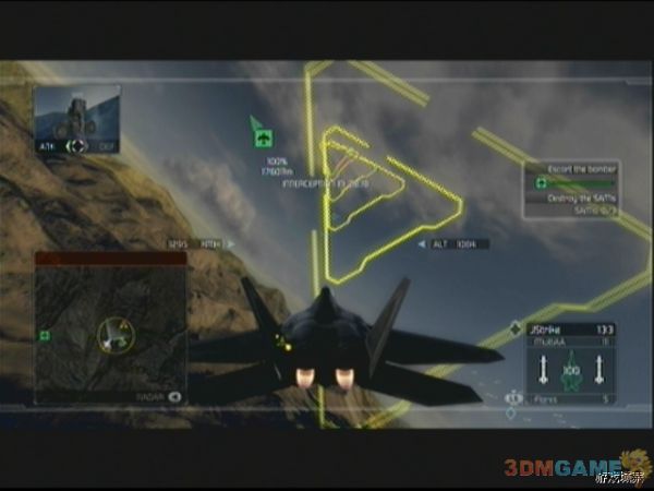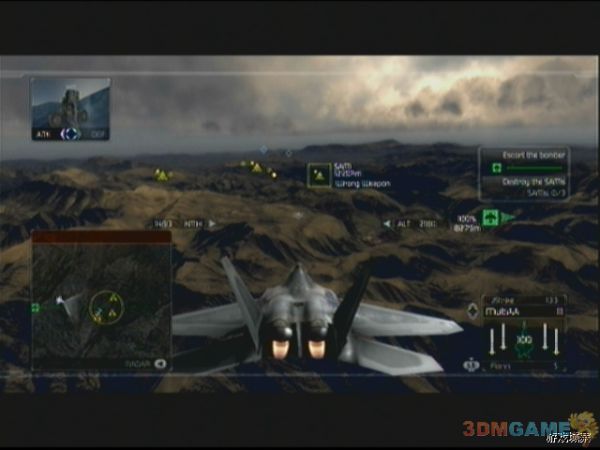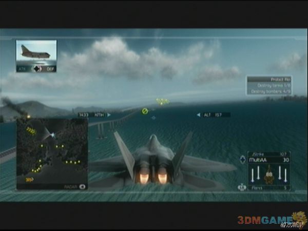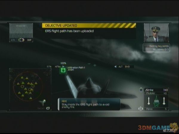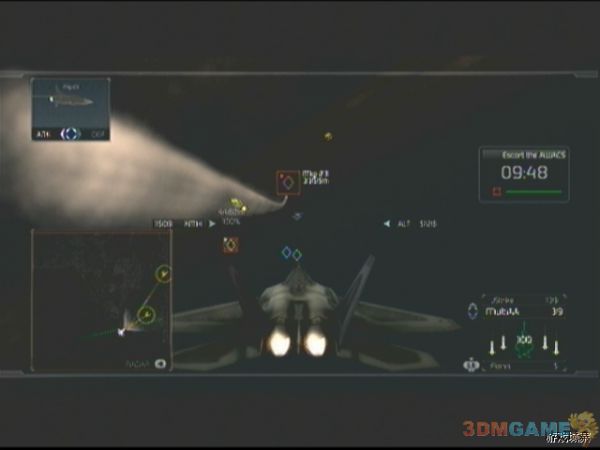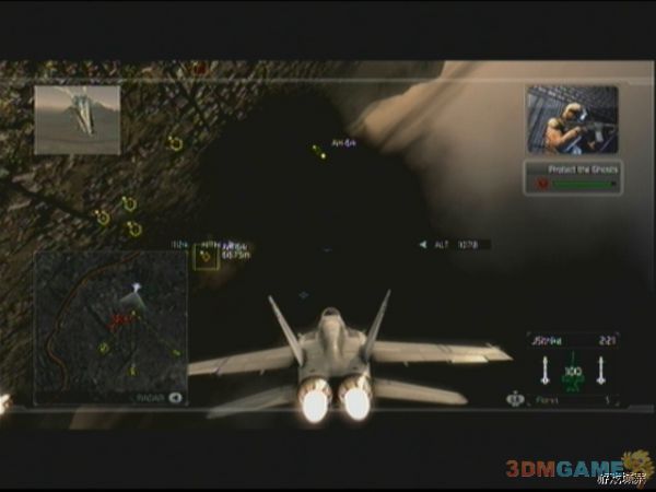 任务开始后,一定要紧紧跟随我方预警机,敌人的飞行编队会从四面八方涌来,玩家要注意,敌人的SU-35会以非常快的速度接近预警机,如果玩家不跟上预警机,Su-35会对预警机进行强烈攻击,预警机会很快会被摧毁,Mig-29移动力不如Su-35,威胁也要要小一点,如果之前经验足够,这关应该可以使用F-22了,F-22超高的移动性能可以给玩家增加不少帮助。预警机会在绿色圆圈上飞行,待飞行大半圈后,任务更新。玩家需要打开ERS进行最后的飞行,即可摧毁核弹装置完成任务。