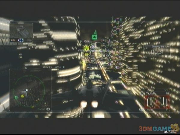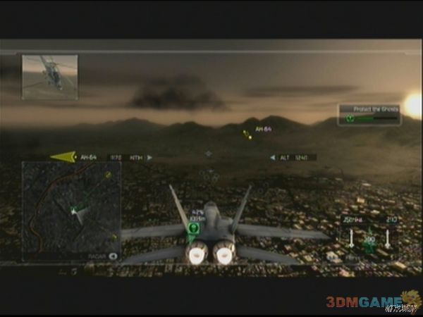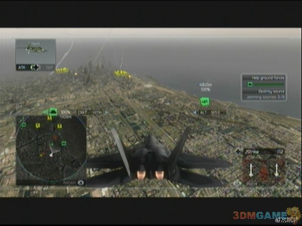 任务开始后,依然收到电磁干扰,迅速飞往地图中的预警机区域,此区域内将不受到任何干扰,飞行一段时间后,就可以看到敌人干扰装置,迅速予以歼灭,一共有6个干扰装置,后边的几个还会有对空AA炮守护,敌人的Mig-29和Mig-23会不断的前来进攻,一定要注意保护好预警机,否则会被敌机打成筛子,攻击的时候尽量不要出预警机的范围,每次击破干扰台装置,预警机的防干扰区域都会增大。在破坏到第5个干扰台后,发生剧情,任务进入下阶段。因为最后一个干扰装置在城市内部,所以任务改为掩护地面部队前去破坏,敌我两方在城市内大打出手,敌人部队位于楼层之间,所以必须选择好合适的飞行路线,否则不是导弹被建筑阻挡,就是飞机撞上摩天大楼,技术好的朋友们就进行刺激的超低空作战吧。等清完全部敌人后,再清理不断出现的直升机,等部队炸毁最后一个干扰装置后,任务成功完成。