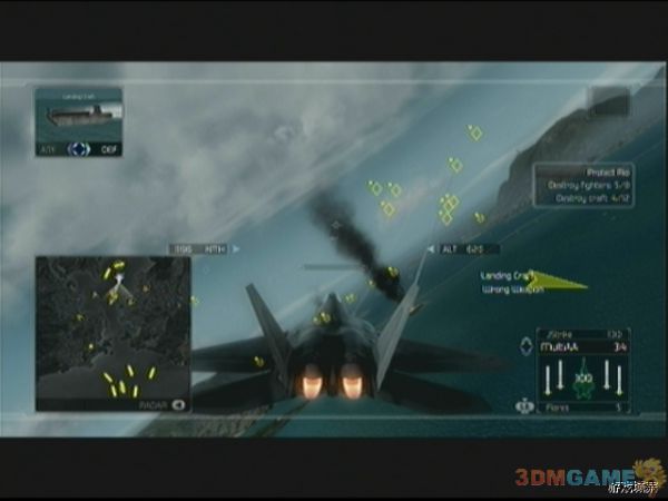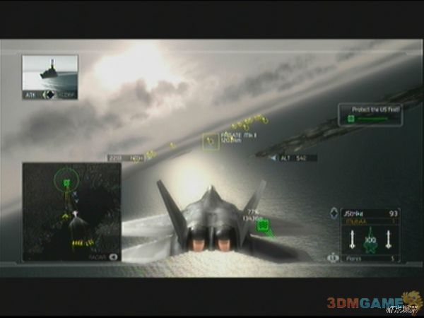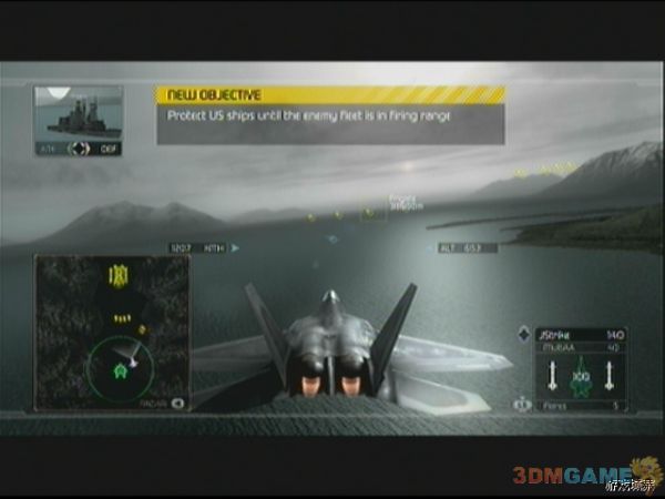 开始后不久任务出现,倒计时开始,敌人飞机群会前来进攻,主要是F-14D,敌人飞机非常的多,本关战斗也很刺激,玩家不时处于锁定和被锁定的状态。倒计时在到达5分钟左右的时候,任务更新,敌人AV-88来袭,目标直指我方舰队,玩家只需攻击它们即可,周围的F-14D可以不必理会(想拿经验另当别论),倒计时结束后,我方舰队使动,玩家要保护它们不遭受敌人的攻击,敌人大部队会朝这边压上,建议优先击破的是AV-88,因为其速度快,而且对舰队造成的伤害大,等清理完毕AV-88,AH-64和导弹快艇后,开始对付敌人舰队,敌人舰艇的皮都非常厚,需要数发导弹才能解决,建议从边上开始清理,一旦冲入敌人舰队中,将会不时的被锁定,非常麻烦,所以清理掉几艘后就掉头再慢慢来,清理的时候可以减速飞行,这样可以一次性用攻击敌人4发导弹。舰队全灭后,任务成功完成。
