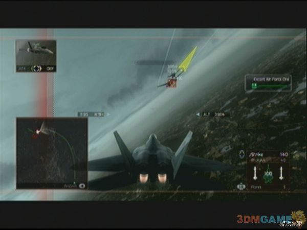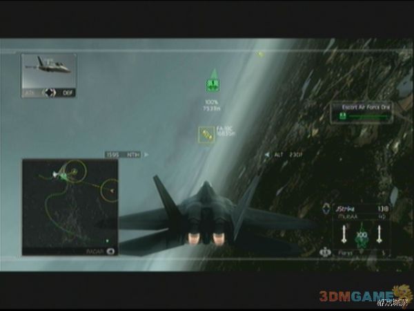 任务开始后,径直往空军一号方向飞,然后护送空军一号几分钟后,敌机F-18C会从西边出现,必须阻止敌机攻击接近空军一号,西边的敌机清理完毕后迅速北上,从从现在开始,敌人会从四面八方不断出现,机体全部是F-18C,建议玩家自机不要飞的离空军一号过远,否则难以迅速回去保护,空军一号到达后半段的时候,会出现电磁干扰现象,此时玩家锁定敌机后,敌机非常容易就会脱离锁定,所以锁定后迅速发射导弹。护送到达终点后,任务顺利完成。