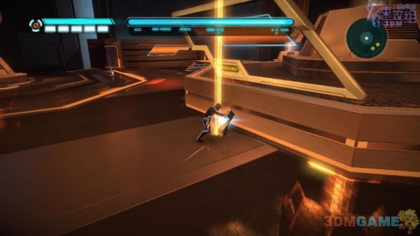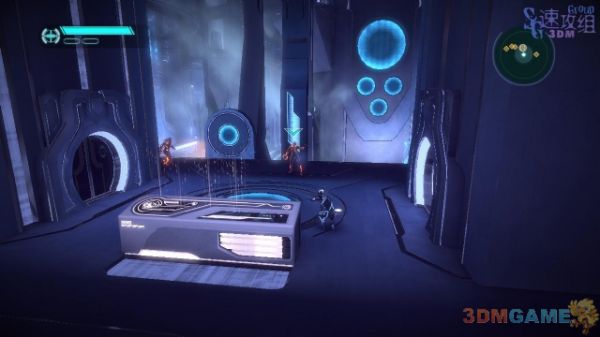 两边台子上的能量箱,按住shift跑上去后可以直接补满,地上小型的只能补充一部分,敌人都干掉后门打开,进去后过场动画。