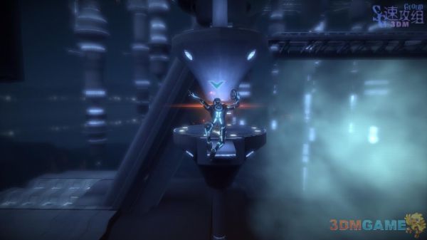 然后从右边跳到墙上,攀爬到中间的平台,上到顶部后处罚中间的发光体,然后进入过场动画。