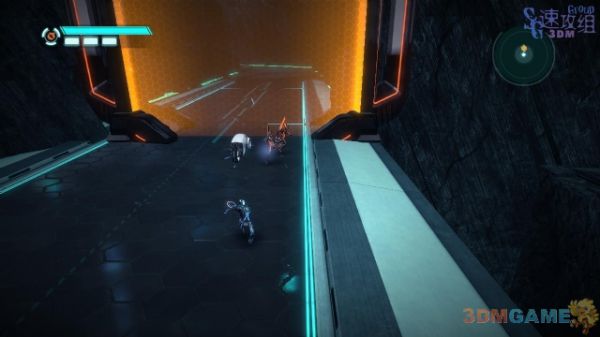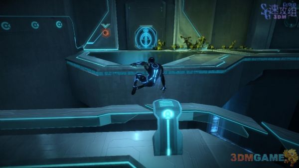 先回头找找有个可以用飞盘触发的橘黄色开关,出发之后再利用光球飞到另一平台。