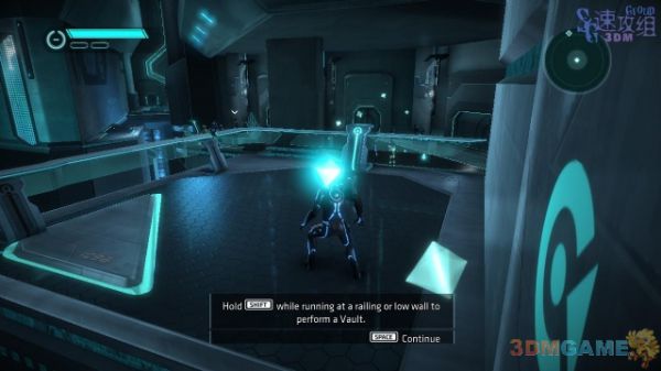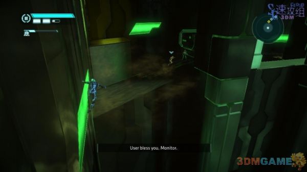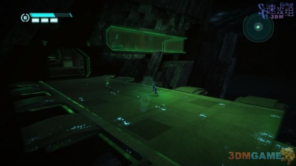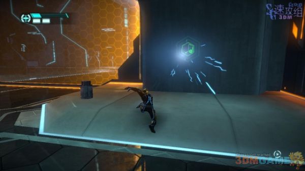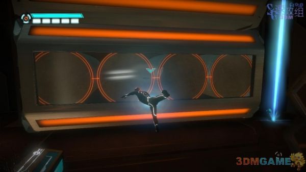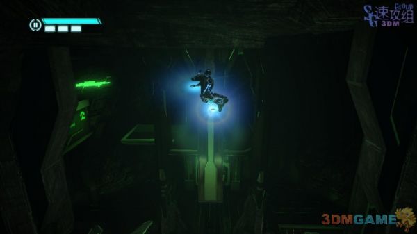 继续跑酷,到图中这种地方小心激光不用说了,按右键可以落到下一层的突出点。
