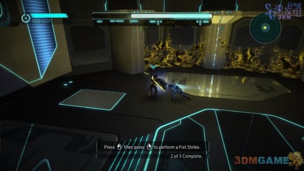 CG结束后去任务点,屏幕左上角是我们的血量和能量,右上角是小地图,可以看到任务点,