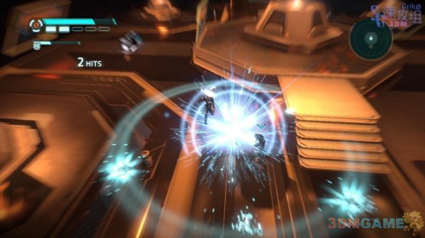 进入刚刚开启的大门,遇到新敌人,使用三号飞盘,按F攻击后敌人会漂浮在空中,这时候普通攻击才能奏效,