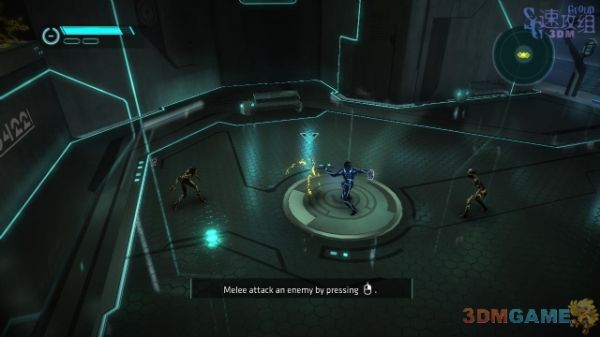 最后到达图中的房间,这里出现敌人,按左键飞盘攻击,按住左键飞盘蓄力攻击,按右键近战攻击,