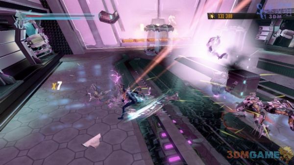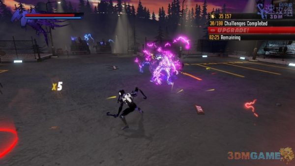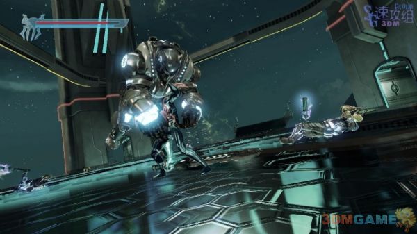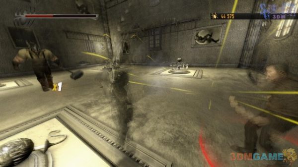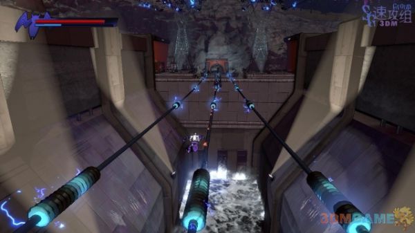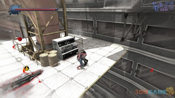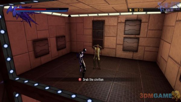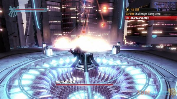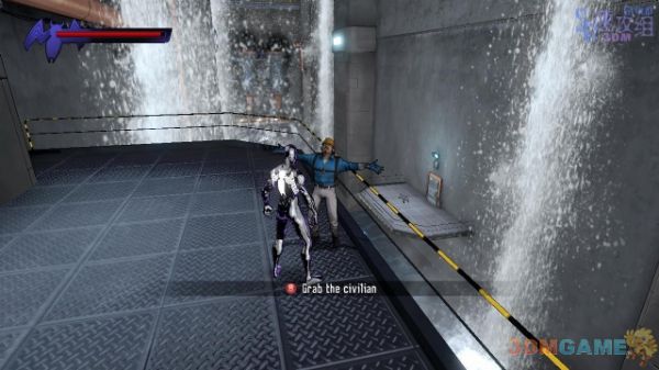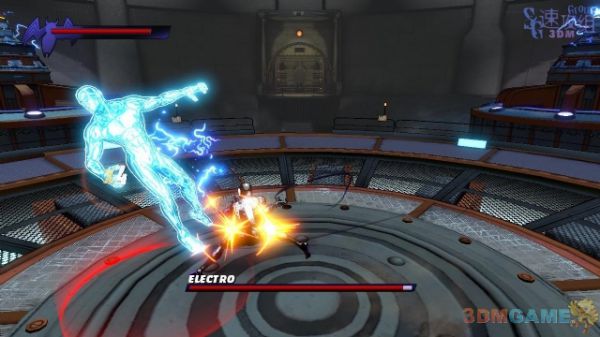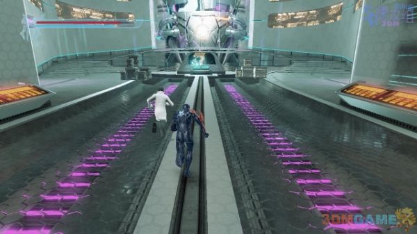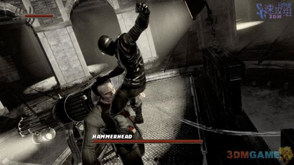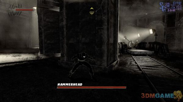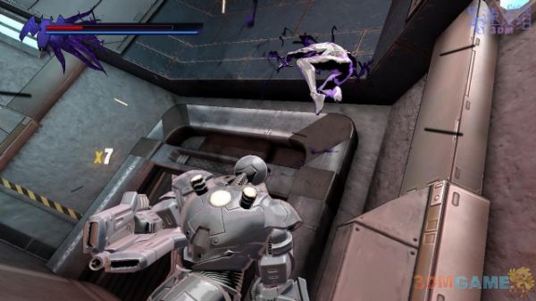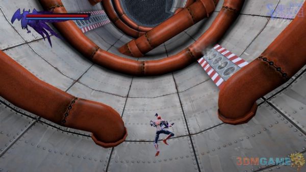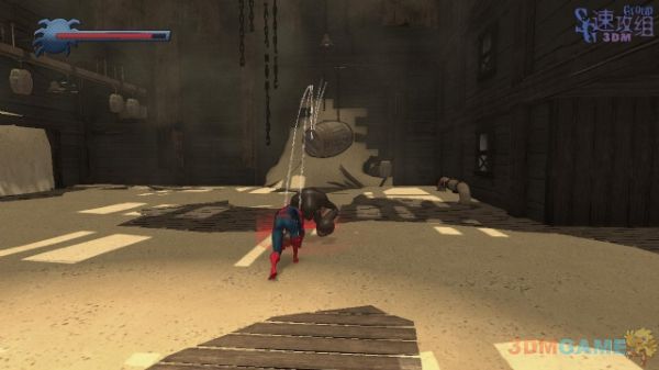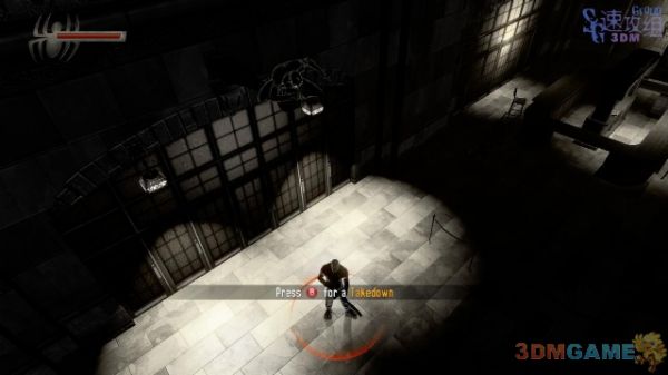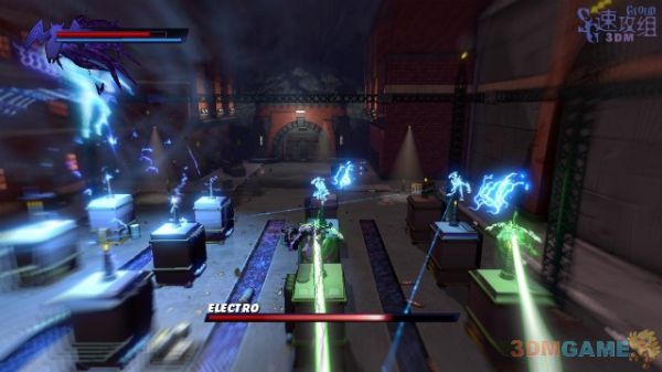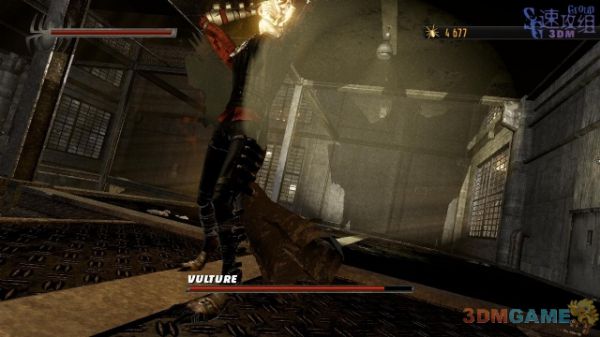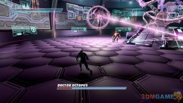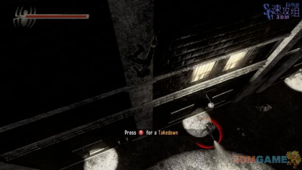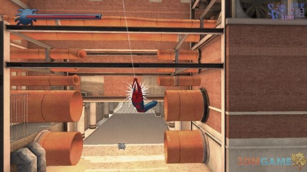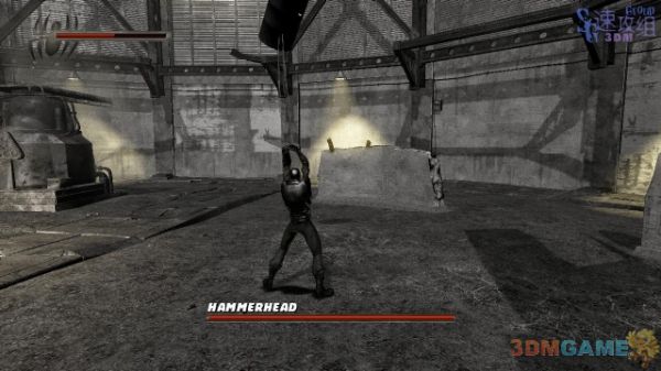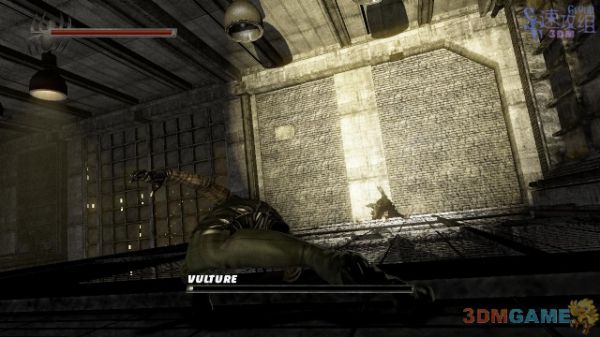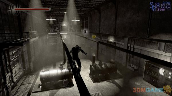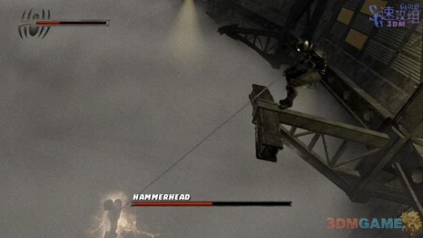 一般攻击只要从平台上下去就能躲开,等他到两边的发电机上时我们用蛛丝飞过去踢他即可,没血之后他会逃走。