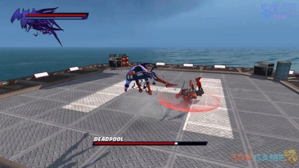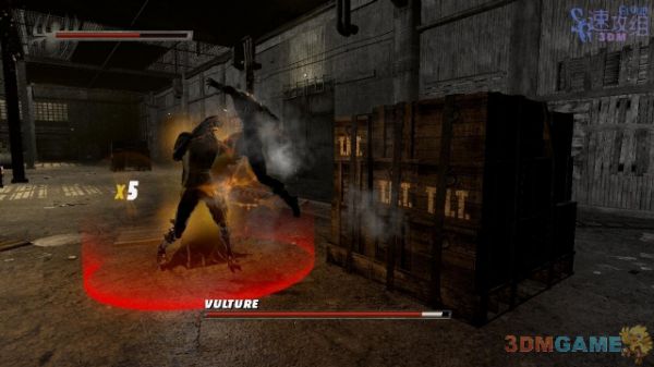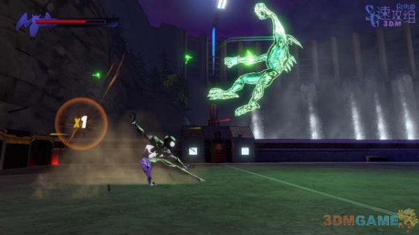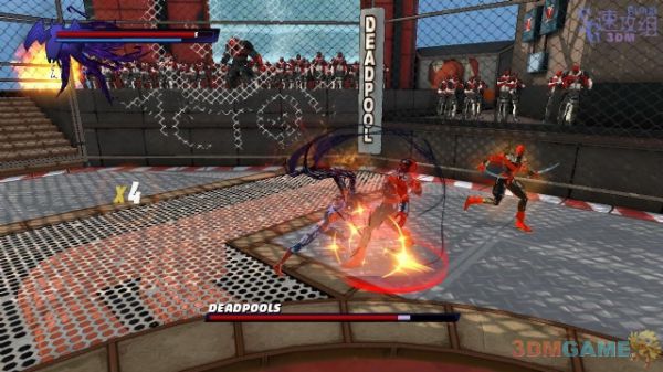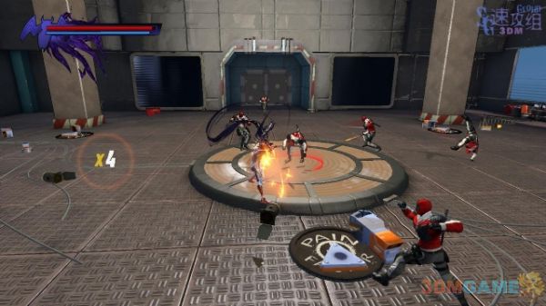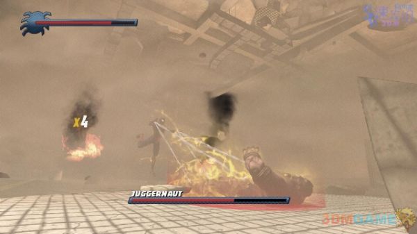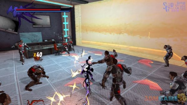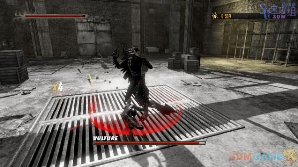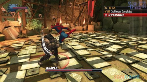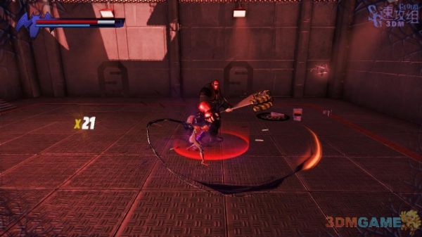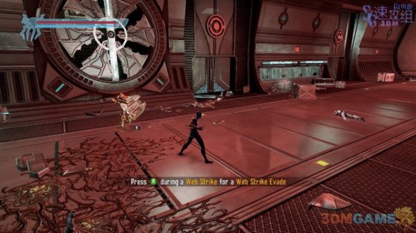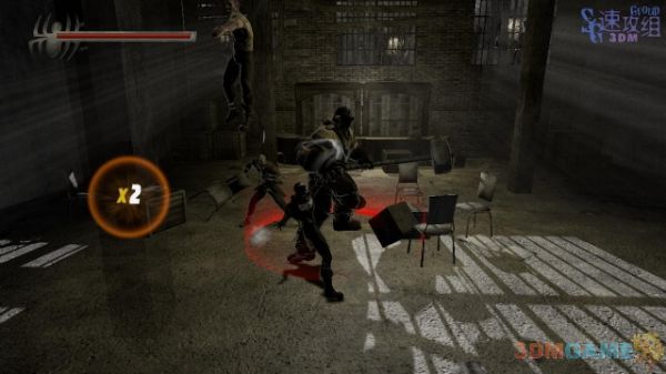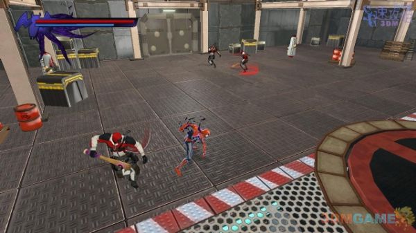 BOSS战,几个红色的全是假的,按B用蛛丝抓住他们飞踢,一脚一个迅速解决,然后真身开始行动。