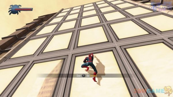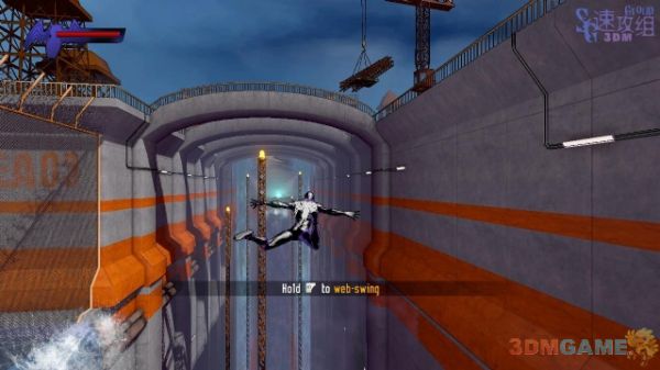 接下来使用黑衣蜘蛛侠,前边带黄色三角标记的按RT可以直接用蛛丝抓住然后飞过去,