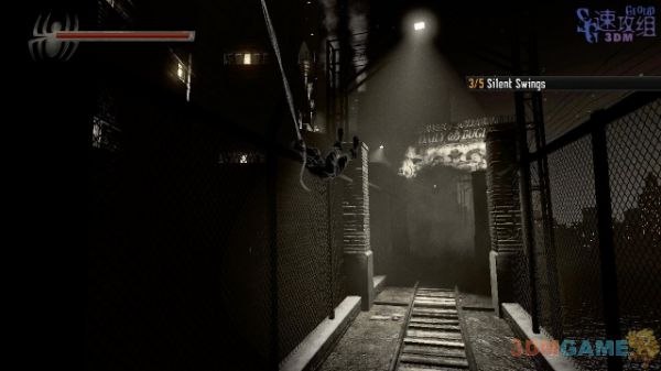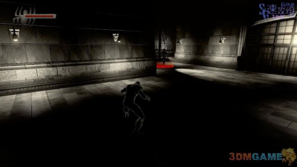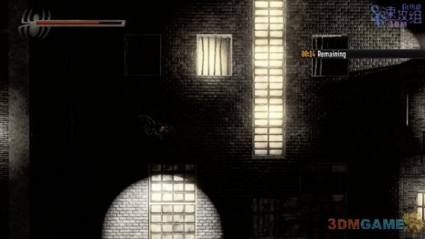 最后一关了,一开始使用过去的蜘蛛侠,在黑暗中前进,当BOSS点亮灯的时候躲在阴影里,