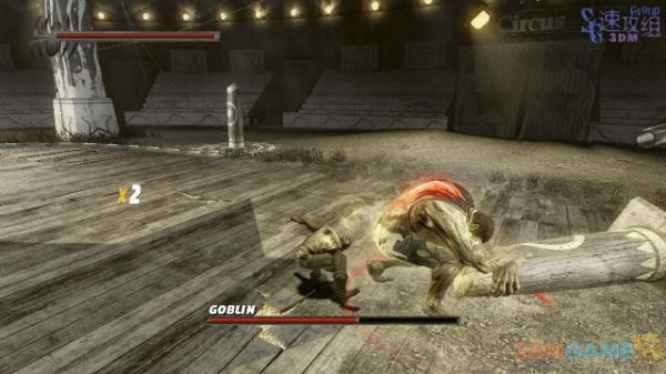 接下来来到了竞技场,一开始登场的是个体型挺大的敌人,看上去很强,仅仅是看上去,