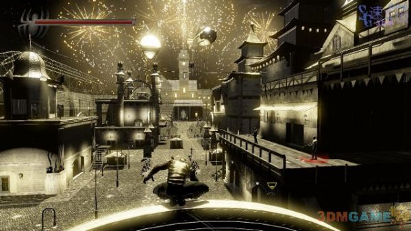最后BOSS没血了会站到二层向我们扔飞刀,我们利用周围的柱子跳到BOSS那里一脚踹飞他,得到碎片,过关。