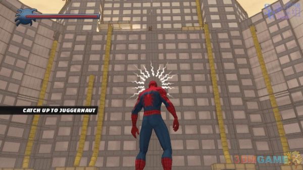 接着使用未来蜘蛛侠,自由落体,按住A减速下落,躲开路上的障碍,距离够近的时候按B飞到BOSS脸上,