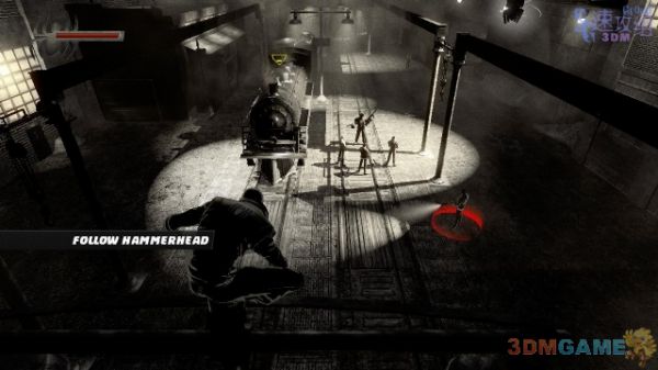 救出全部人质后继续追BOSS,来到铁轨上,不要从这个空间出去,不然会被乱枪扫死。
