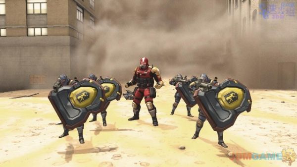 来到室外后BOSS撞倒了一栋大楼逃走了,我们跟上去,过场动画结束后要去救三个工人,