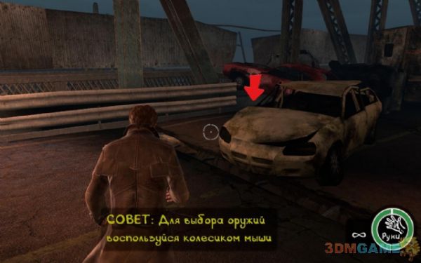 一开始前面有辆废车.旁边有红色箭头.走过去按一次空格.靠住掩体.触发剧情..