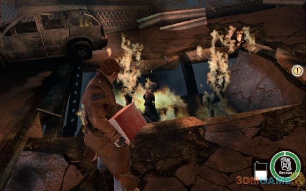 之后触发剧情动画(动泥马..9G动画..)前方有油桶.按F获取