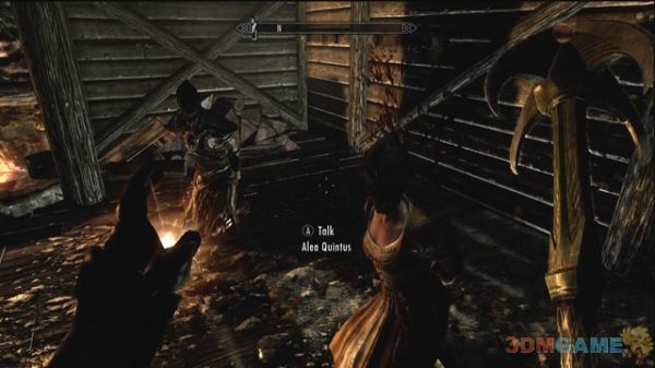 到这里,任务似乎终结了。但回到溪木村(Riverwood)大街上,等着收到暗黑兄弟会的来信吧!你现在可以任意找一张床休息,睡梦中被刺客Astrid绑架……她命令你杀掉三名俘虏中(Alea,Vasha,Fultheim)的一个(阿毛:如果不杀的话,你是没法出门的)。你杀谁,或者杀几个都无所谓,Astrid姐只是想看你杀人而已……