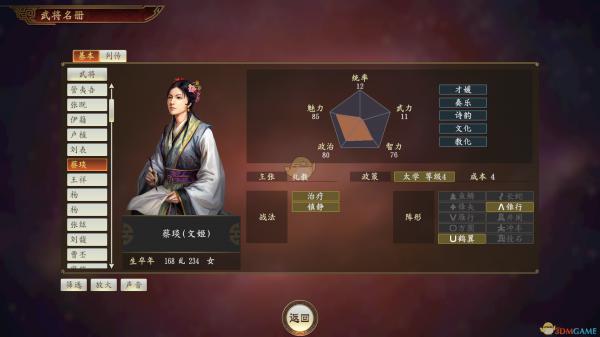 在《三国志14》这款游戏中,有很多的小伙伴对于蔡琰这一角色是比较熟悉的,因为这就是历史上著名的蔡文姬,有小伙伴想要知道该武将在游戏中的具体作用如何,那么就来看看“abcdqqq2”带来的《三国志14》蔡琰武将点评吧。