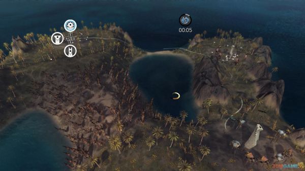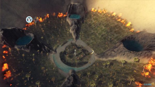 The Big Wave:一开始就按下空格下达领取神符的命令,然后迅速去将左边陆地上的水吸干,然后在中间水池尽头铺出一条路让子民送护符到右边的图腾村落即可!(看了图,再进去游戏你就明白了,呵呵)