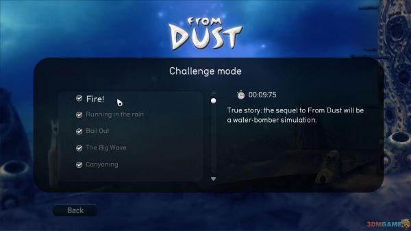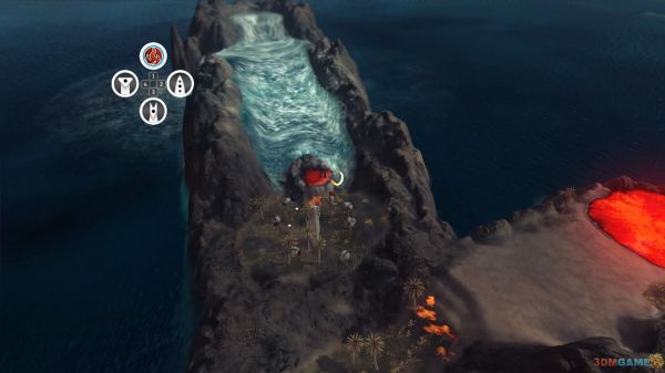 Waterfall:关卡一开始就去吸满海水,然后镜头到山顶将拿着护符的子民用大水冲下来,此关非常抢时间,一般1-2次大水就能把子民冲到山脚下了,然后把山脚下的水吸干让子民通过即可!