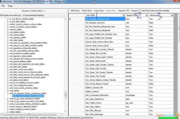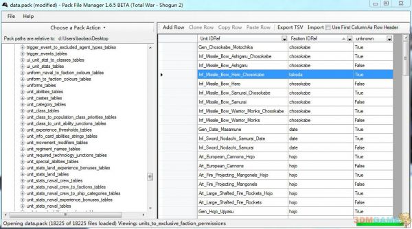 1.特殊兵种(把想要的特殊兵种都出现在你所选择的势力里)我以长宗我部的弓箭英雄(Chosokabe Bow Hero)改成武田所属为例,首先,我们打开PFM,找到游戏目录下的DATA文件夹里的data.pack文件。我们要用到DB里的两个文件。