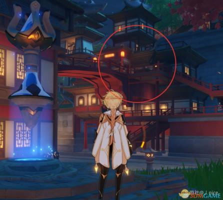 传送到璃月城上面传送点,走楼梯到如图位置,