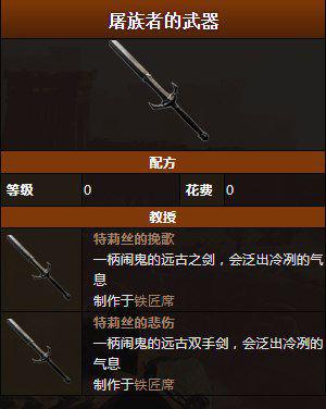 屠族者的武器是流放者柯南中的一种配方。可以在黑暗要塞打败金斯告后学习。