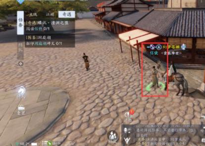 2、下图这个开封的房子前面就是信使,对话即可触发奇遇;