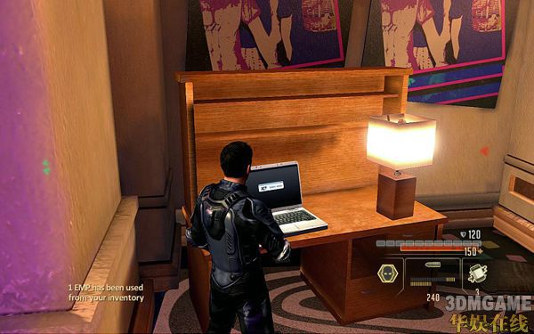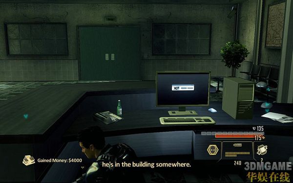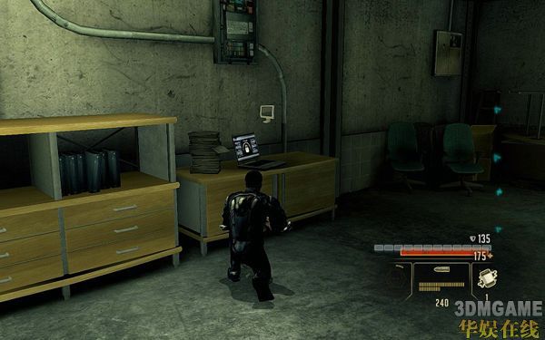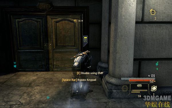 首先来到第一个场景,HACK掉附近的电脑和电子门;打开前面的通道