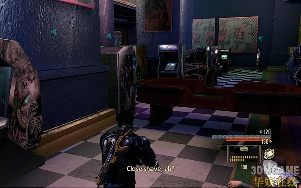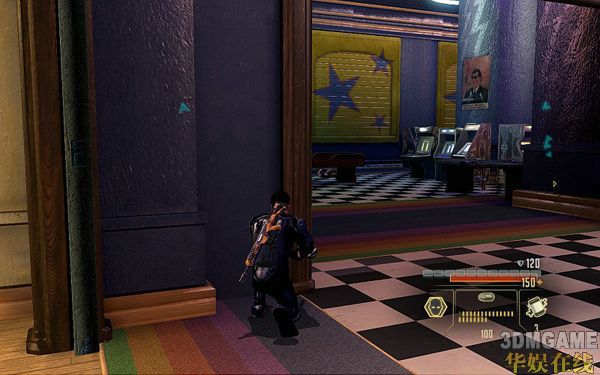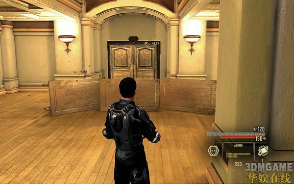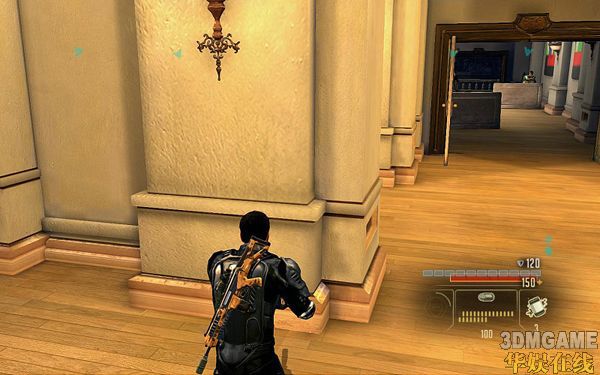 然后从中间大厅的左边入口绕入;沿路的敌人可以使用STEALTH技能锁喉掉