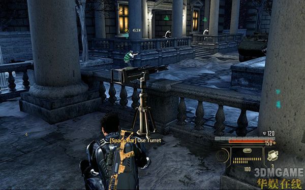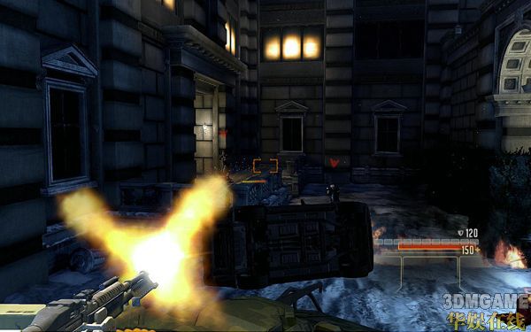 开始之初你可以使用重机枪干掉沿路阻挡的敌人;建议此处攻击车子让车子爆炸解决掉附近的敌人