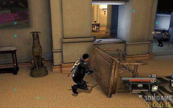 然后沿着大厅左侧慢慢前进;干掉沿路的敌人来到下一个场景