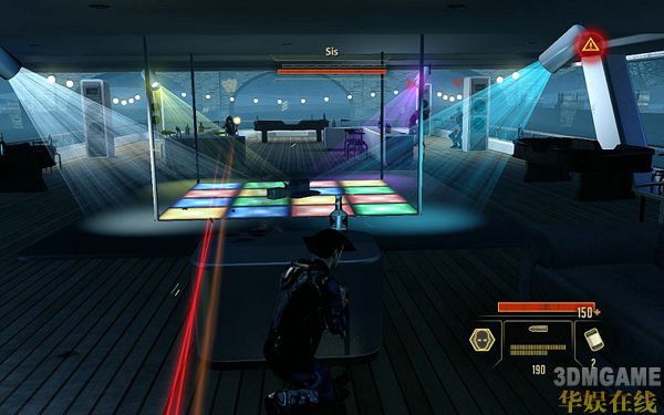 下面就是本游戏第一个比较难打的BOSS。SIS。这个人使用的是冲锋枪;激光瞄准的区域则是射击区域。一开始的时候,先躲在中间的掩体,然后把附近的三个杂病使用突击步枪狙杀掉。