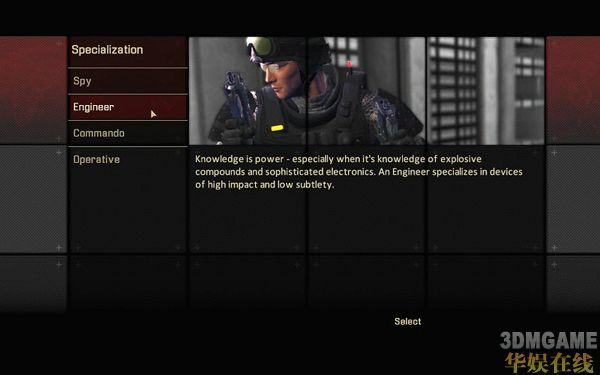 具体分为四大类,SPY,ENGINEER,COMMANDO,OPERATIVE
