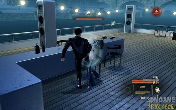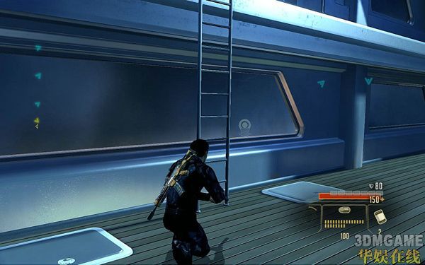来到游艇,先从右边潜行上去;沿路的敌人可以从背后使用TAKEDOWN干掉;不要按SPACE刺杀掉;会产生声音惊动附近的敌人