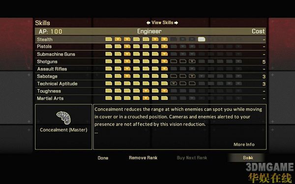 专职很大程度取决你的初始职业的选择。譬如你初始选择的是FIELD AGENT而且加点的时候,把主要的点数都加到STEALTH和PISTOL技能,则建议你专职为SPY