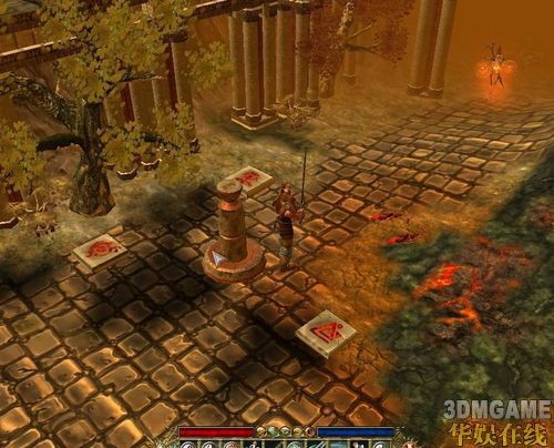 回到老法师那里,法师说,当年武林秘籍葵花宝典已经被分成5份,散落在这张地图上,你去找回来到我把它送给你。。有5个地点,从地图上可以大致分辨出位置(有!号的方向)每本书拿了都会有一个精英骷髅出来领便当,所以拿之前最好小怪清了。辛辛苦苦杀完回去找到老法师,猪脚表示葵花宝典就不必了,经验和钱即可。老法师付完账后又说,这城里有3个金色雕像,但是有群怪物天天在那里拉屎撒尿,我完全受不了了,你把他们拖去腌了。3个大嘴精英怪,看着就恶心,杀掉就行。其中一个就在接任务的右下方,另两个在进传送门左右各一个。边吐边完成任务之后,老法师表示任务还有很多,并且很不客气的继续说下一个,就是有一群怪在天上飞,但是你打不到他们,我拿出包里的新手弓心说大不了打慢点,老法师这时候又说了,当年那谁射日的时候,用完就扔,扔在进传送门右边最下面的那个地方,有个便当火魔在守着。我一路飞奔,很快火魔就便当成功了,传说中的射日弓掉落在地,可是不是说有怪在天上飞么我怎么一个没看见?说时迟那时快,我一把拣起射日弓,飞天怪便纷纷现身出来受死。。。不会反抗,飞来飞去,一顿狂AAAAAAA,就行了(说到这里,我突然发现我的A键上的字迹已经不见了,可见此游戏A的重要性,不过回想起来,此A应该是被DOTA之类的WAR3游戏摧残掉的)杀完之后回去,老法师表示此弓不能给你,还是给你钱吧。。然后就说时机差不多了,去把里面的火巨人杀了吧,以你的实力,撒泡尿就把它熄了。来到门外,有个机关,4个柱子,先点左下的,把剑头指向中间,同样再去点右上的就可以把4个都指向中间,就可以进去了。