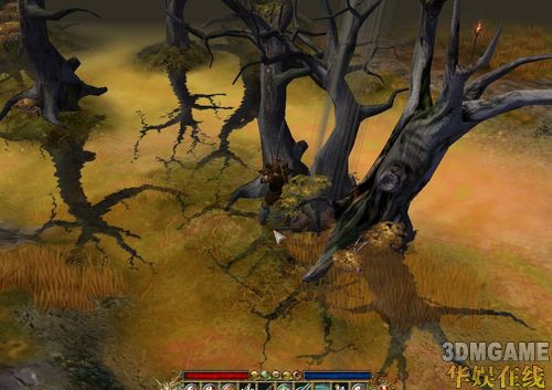 这里要补充一下的是这个游戏是有副本的,第一章有一个是在通往“北方”路上唯一的一个小岔路上。每一章都有1个以上的副本,副本怪物等级是随任务等级提升的,里面有几个精英怪(也就是小BOSS)这类怪物很大几率掉蓝装一件,较小几率掉金色绿色。第一章副本只有一个精英怪,在下图岔路往最右路口走。