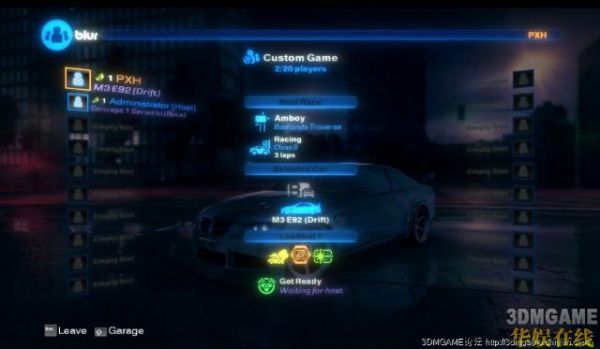 进去房间或者新建房间后显示如下,注意游戏ID就是操作系统的用户名,希望大家不要像下面那家伙一样弄个Administrator,进了房间之后可以按右Shift来更改车辆、设置之类的