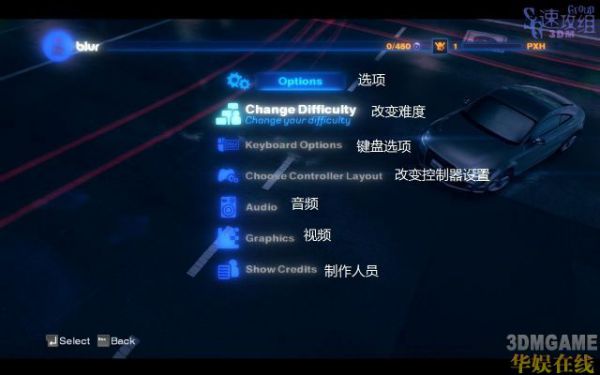 《疾驰残影》菜单选项翻译