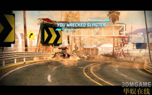 游戏的赛道也随着你游戏的进程会有不同程度的变化。譬如炸掉的桥梁落下的钢管,燃烧的车辆,被摧毁的加油站,都会成为你赛道路面上的障碍物;这就要求玩家时刻都保持紧绷的心态,大大增强了本作的游戏刺激感。万一不小心,玩家的赛车撞上这些障碍物则是功亏一篑。