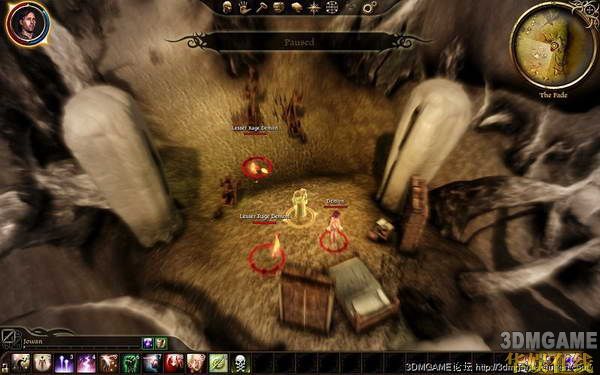 PS:当时主角没学陷阱,最后用盗贼妹妹的手雷+风筝大法解决了他们,Morrigan加入队伍如果没有自动分配补丁,是没有办法在这里加出cone of cold的~
